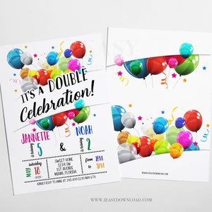 Editable Double Birthday Celebration, Colorful Birthday Balloons ...