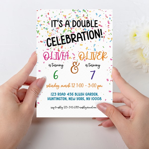 Editable Double Birthday Celebration, Sibling Birthday Invitations ...