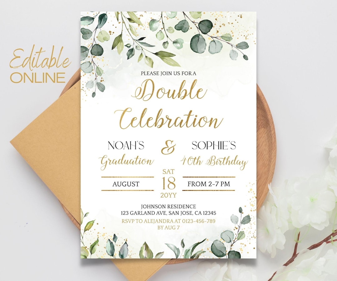 Editable Double Celebration Invitation Template: Birthday & Graduation ...