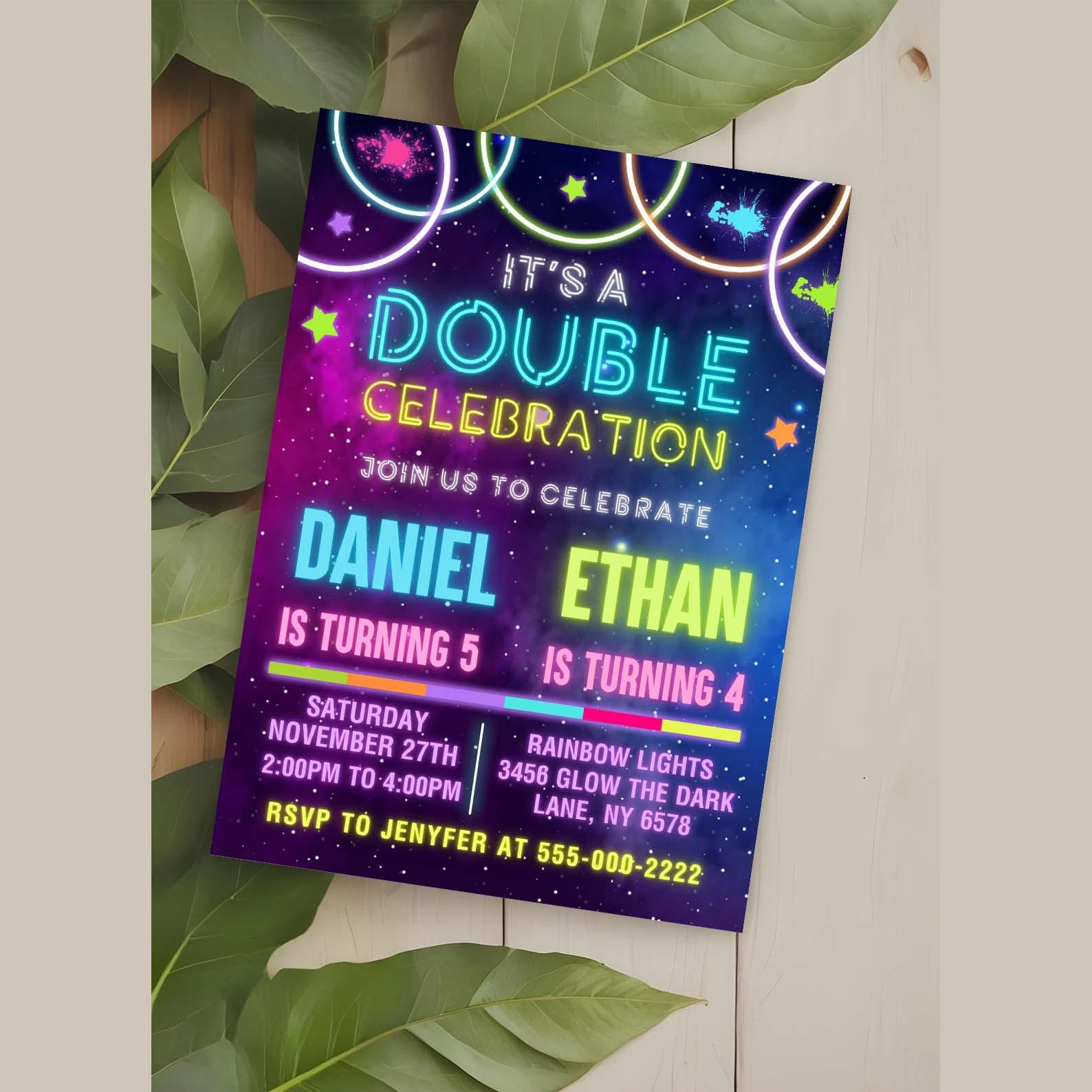 Double Celebration Invitation for Birthday Party, Dual Party Invitation ...