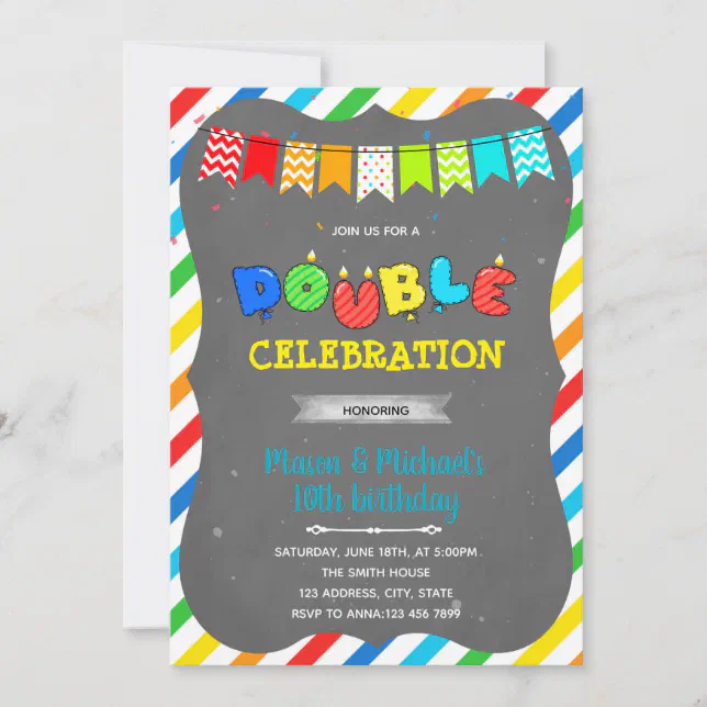 Double Celebration Invitation,double Celebration Birthday Party,double ...