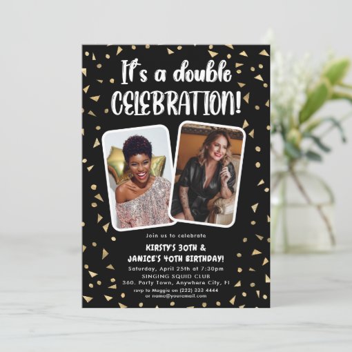 It's a Double Celebration Birthday Party Invitation, Black and Gold ...