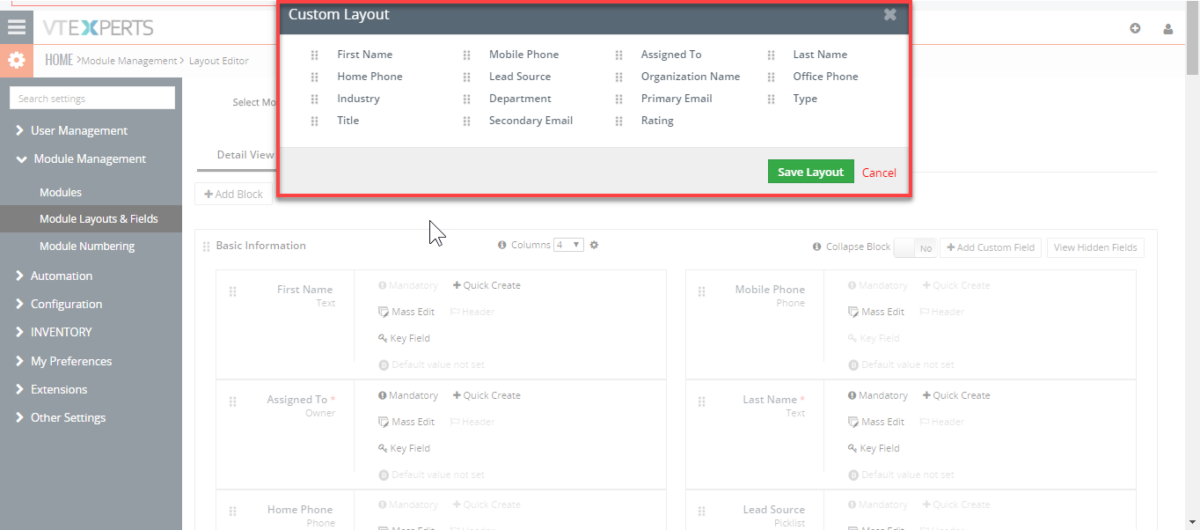 Multi Column Blocks/Layouts - Extension for VTiger