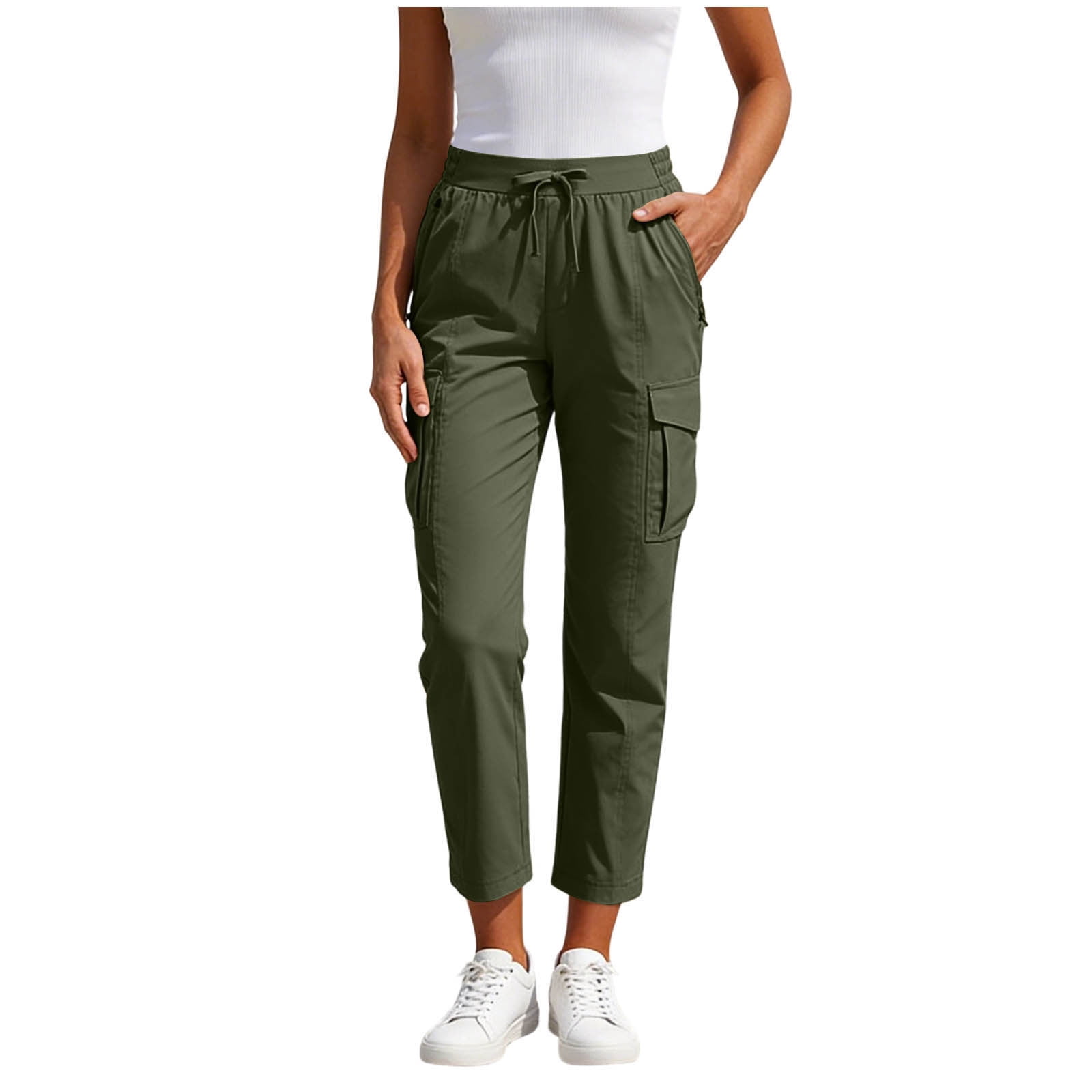 Cargo Pants Women Back Elastic Waisted Baggy Drawstring Solid Casual ...