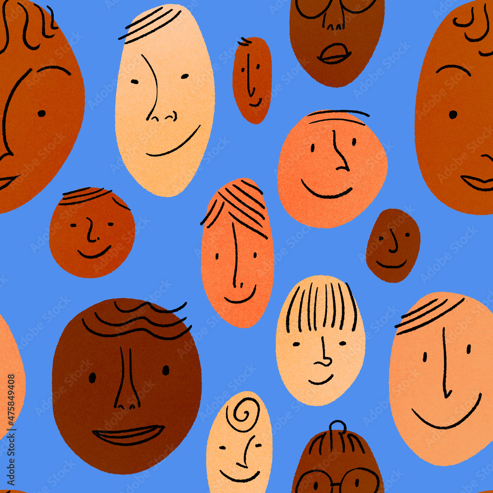 Pattern of multiple people faces Stock Illustration | Adobe Stock