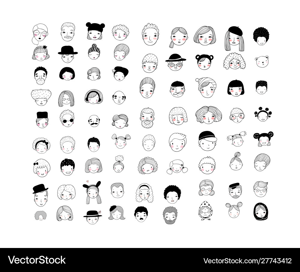 Seamless hand drawn pattern with different faces Stock Vector Image ...