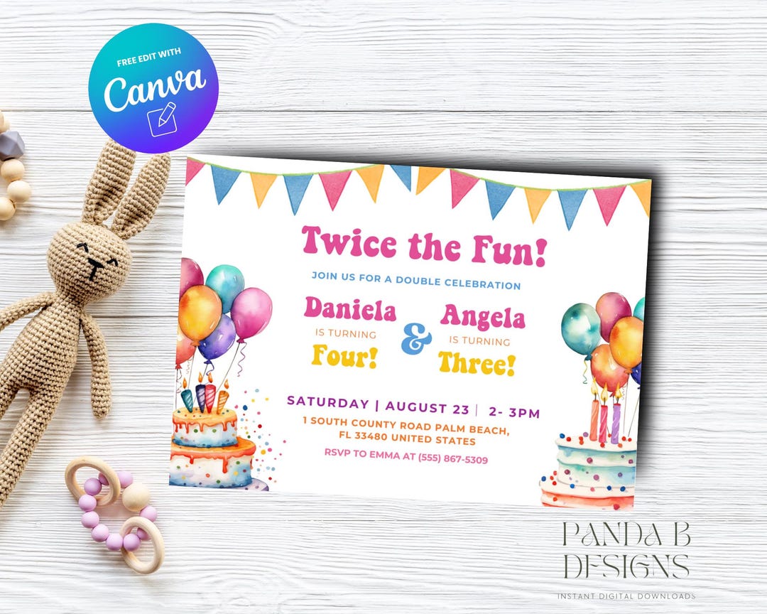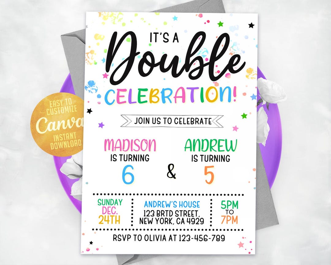 Double Birthday Invitation: Sibling Celebration, Editable Canva ...