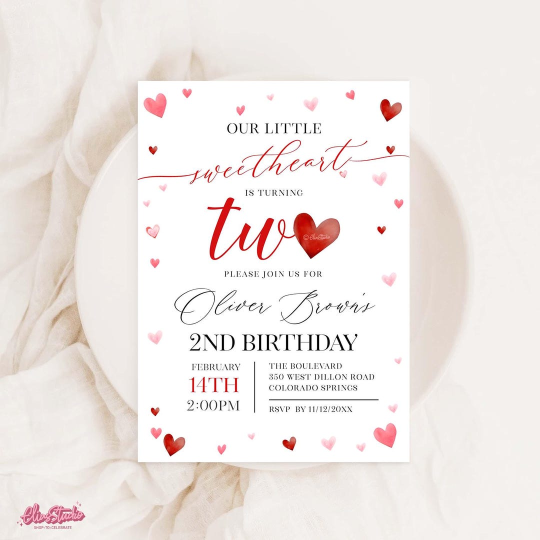 Valentines Birthday Invitation, Little Sweetheart Birthday, 2nd ...