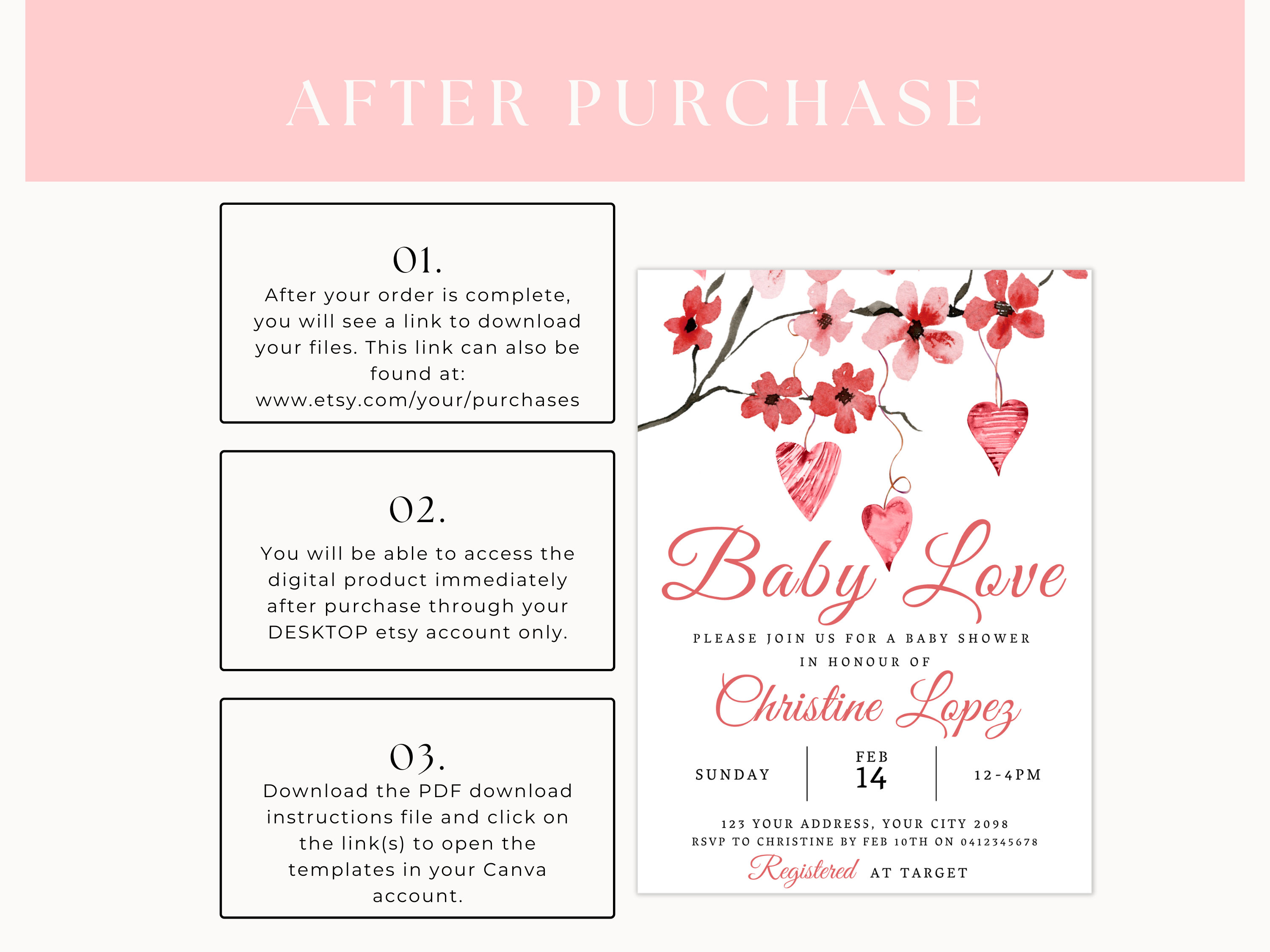 Printable Valentine's February Baby Shower Invitation Set, Editable A ...