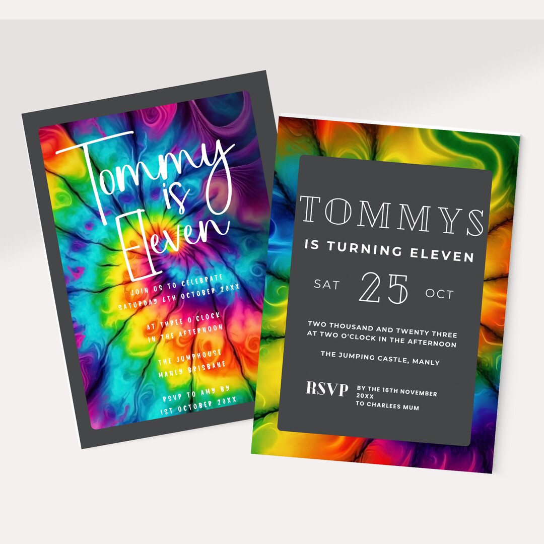 Multiple Tie Dye Birthday Invitations Editable Rainbow - Etsy