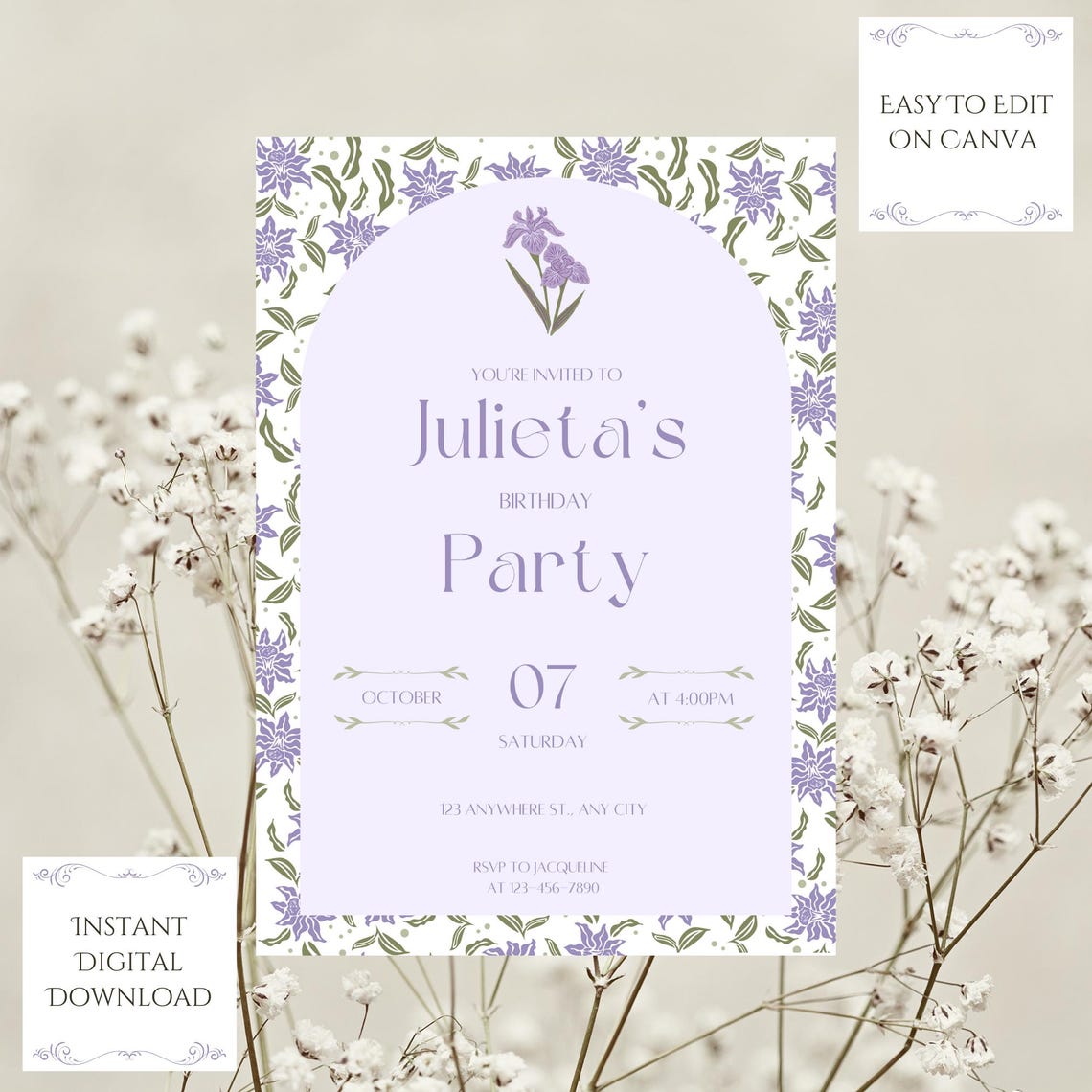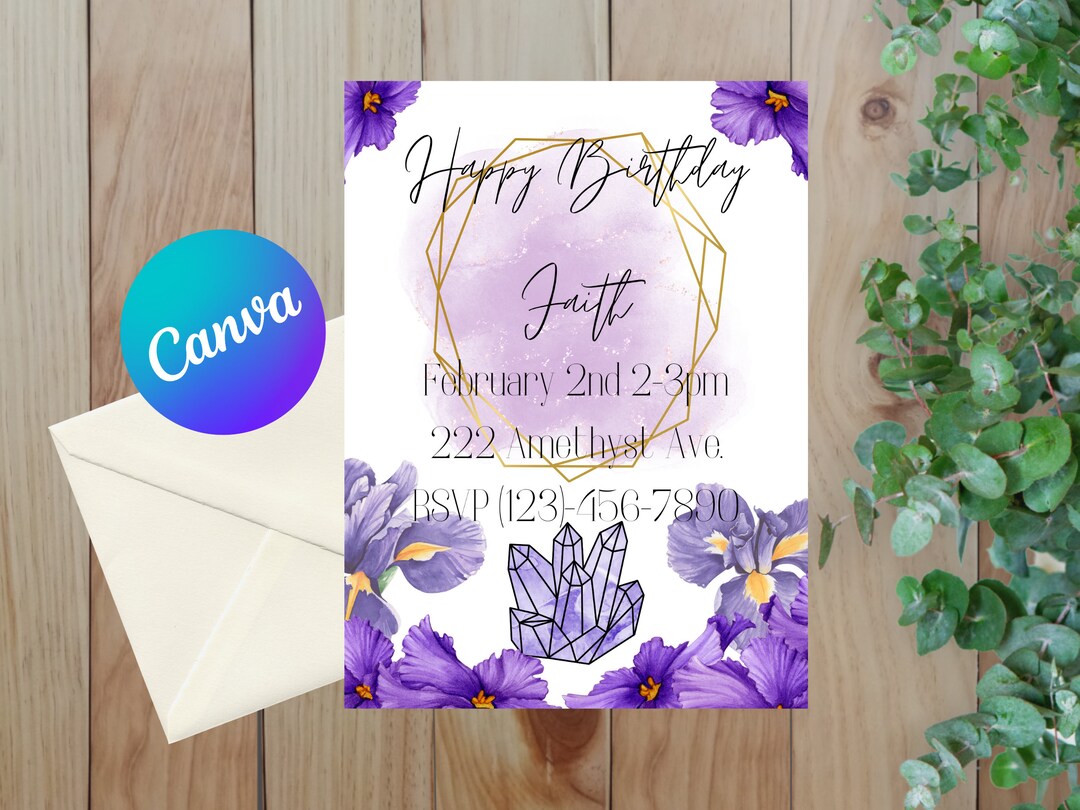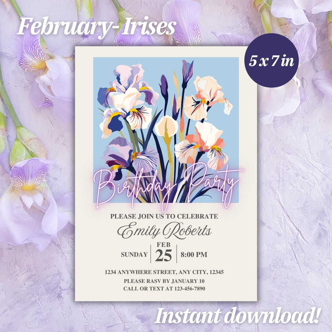 February Iris Birth Flower Invitation | Editable Canva Birthday ...