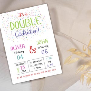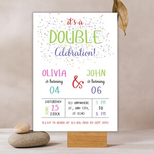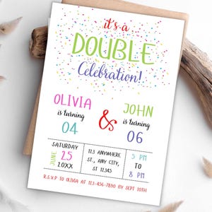 Editable Double Birthday Invitation for 2 Kids, Colorful Joint Party ...