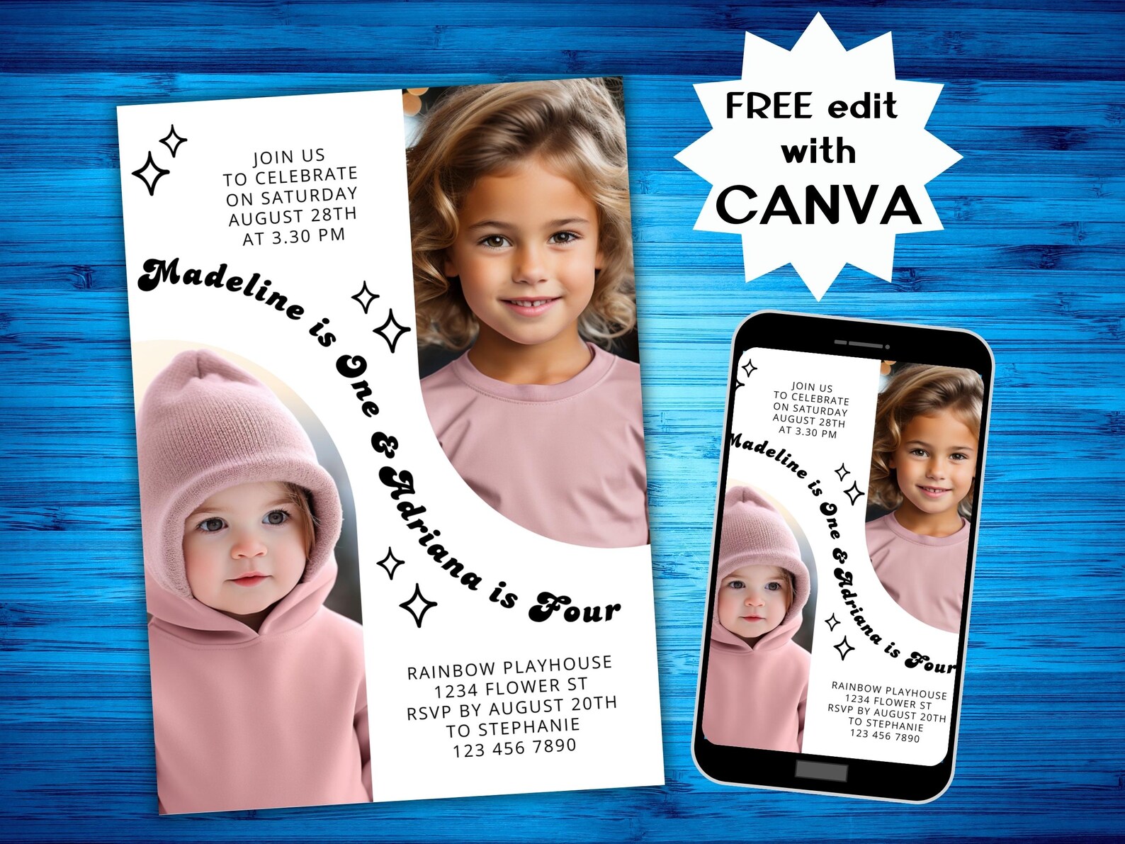 Editable Dual Invitation, Double Invitation Template, Sibling Twins ...