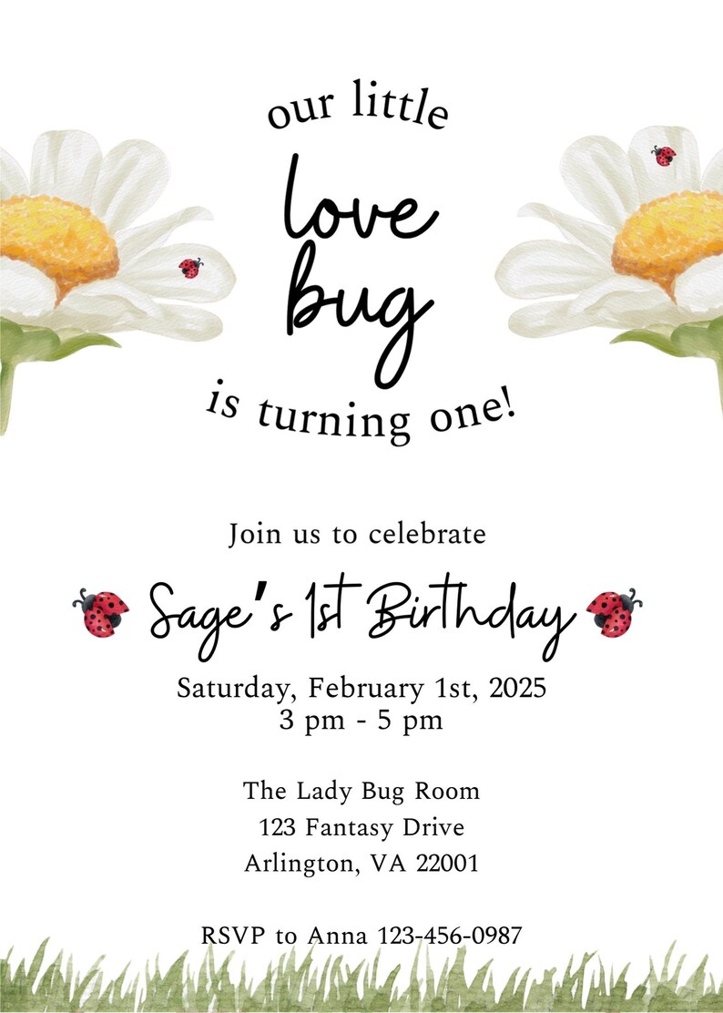 Editable Birthday Invitation, Love Bug Baby Girl Party, Lady Bug ...