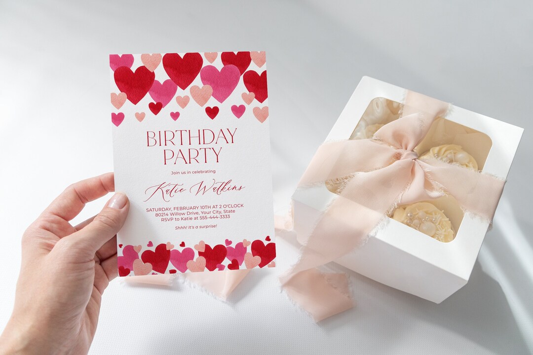 Valentine Birthday Party Invitation, Pink and Red Hearts Birthday ...