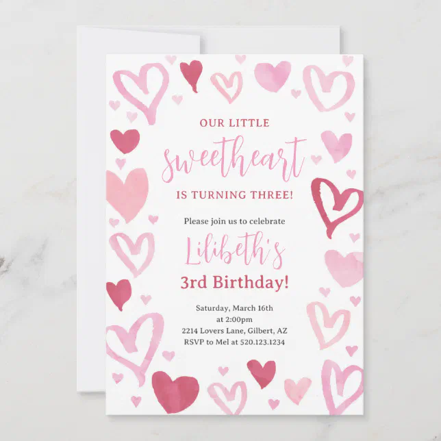 Sweetheart Valentines February Birthday Party Invitation | Zazzle