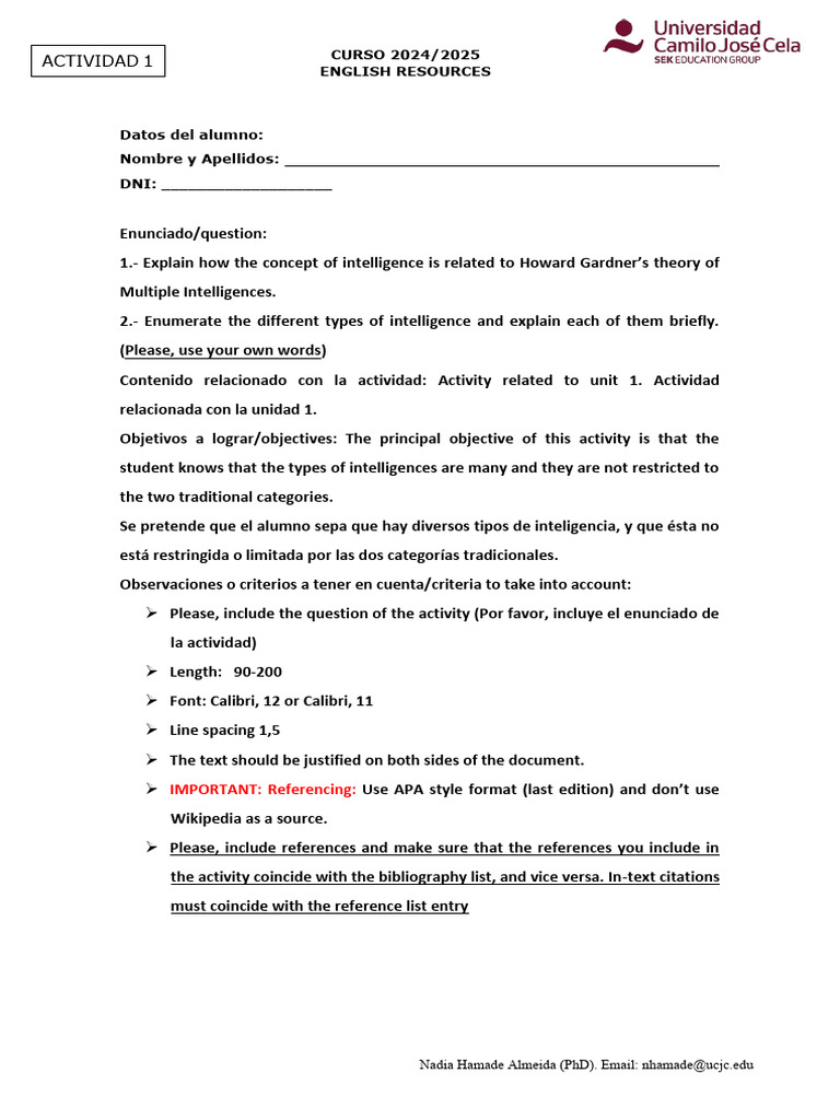 MULTIPLE INTELLIGENCES ACTIVITIES.pdf | Intelligence | Reading ...