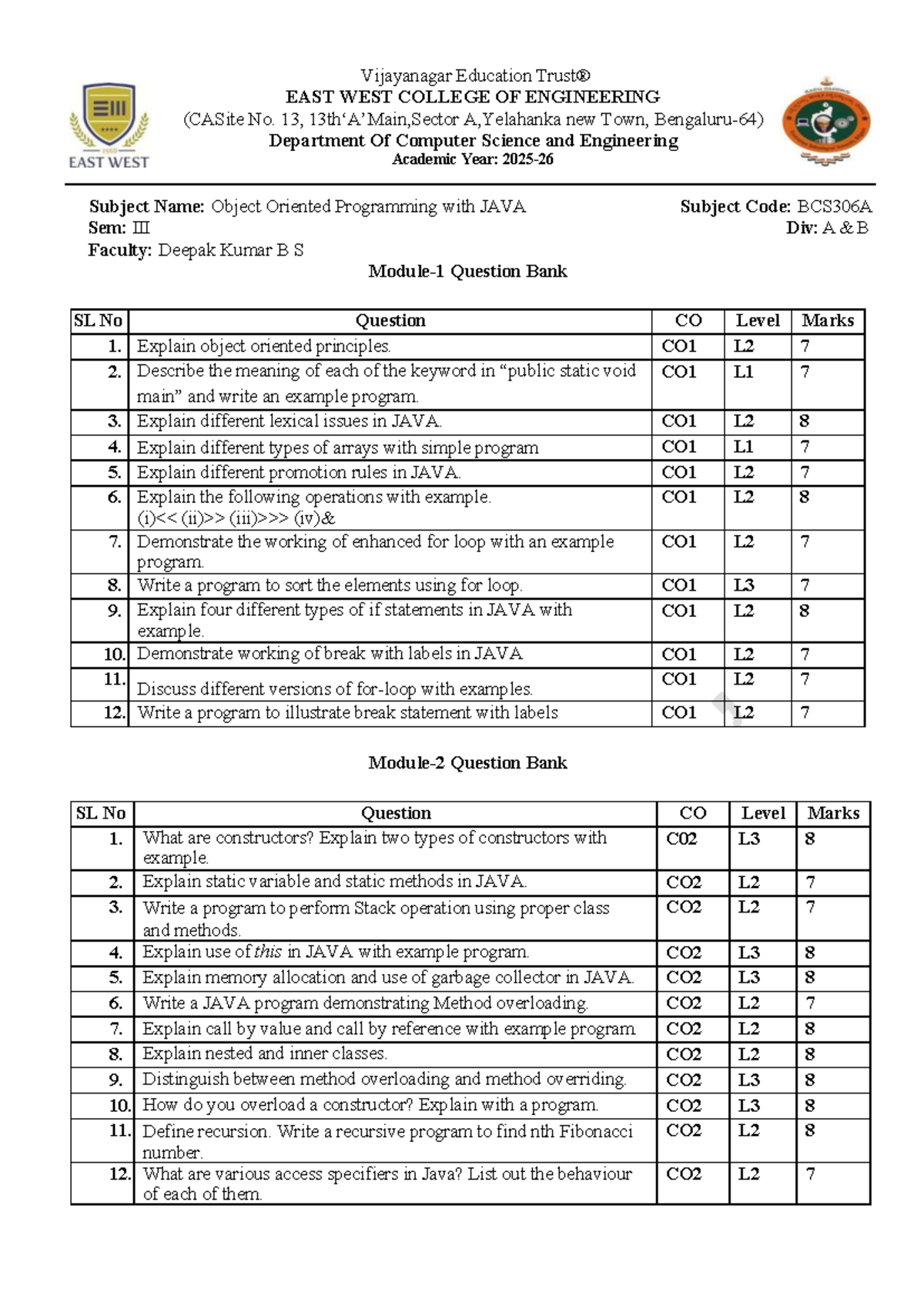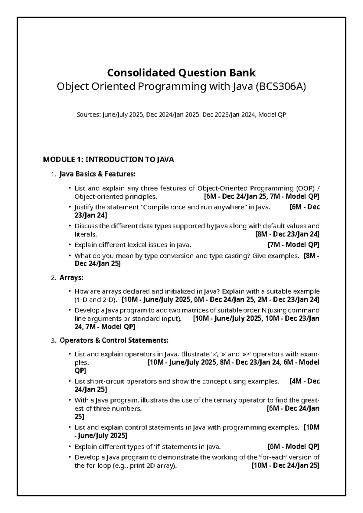 Java Module Wise QB - Object Oriented Programming (BCS306A) - Studocu