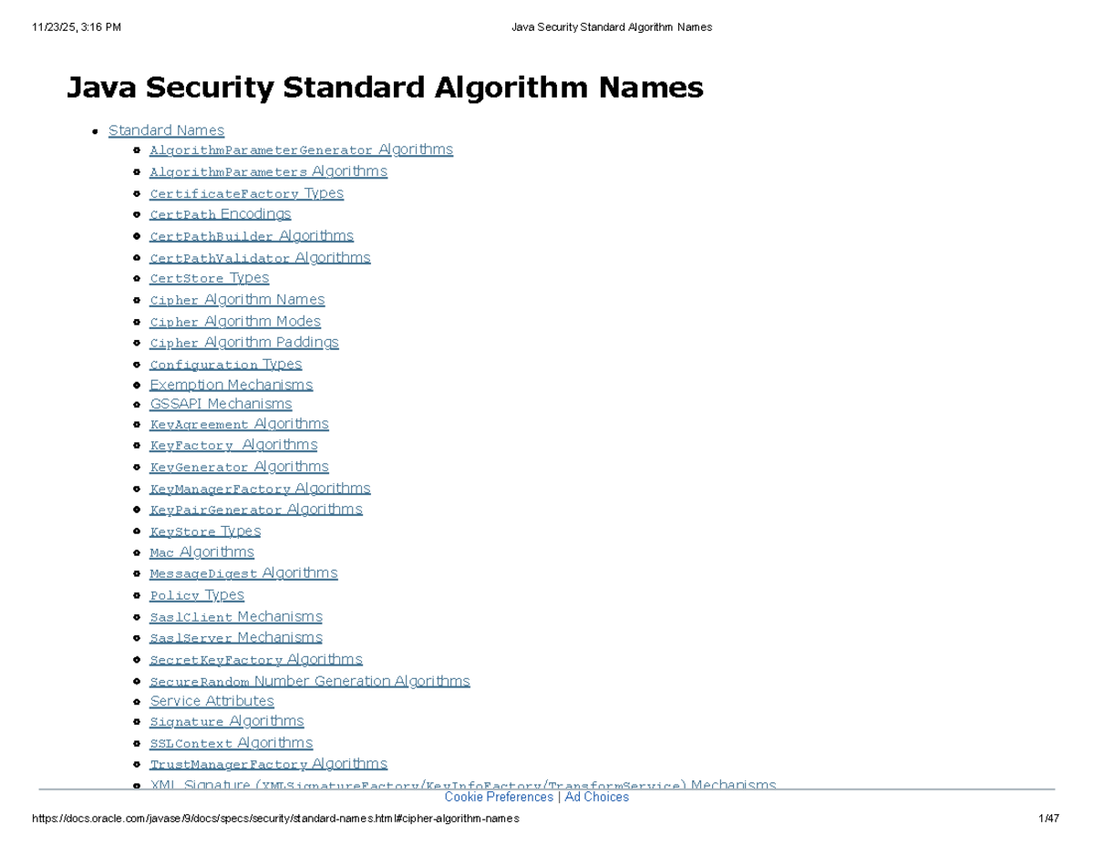 Java Security Standard Algorithm Names Overview and Specifications ...