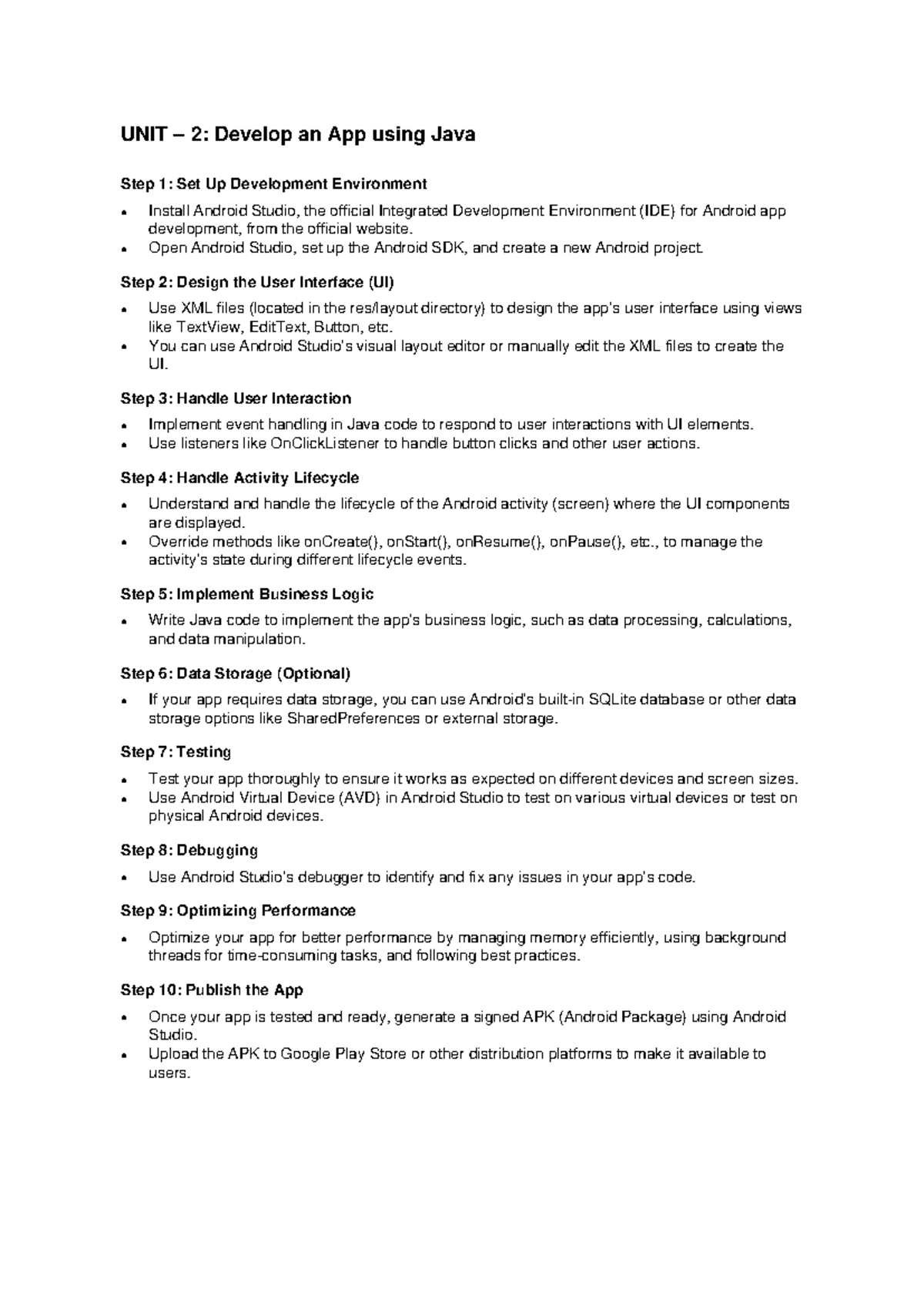 UNIT 2: Developing an Android App with Java - Step-by-Step Guide - Studocu