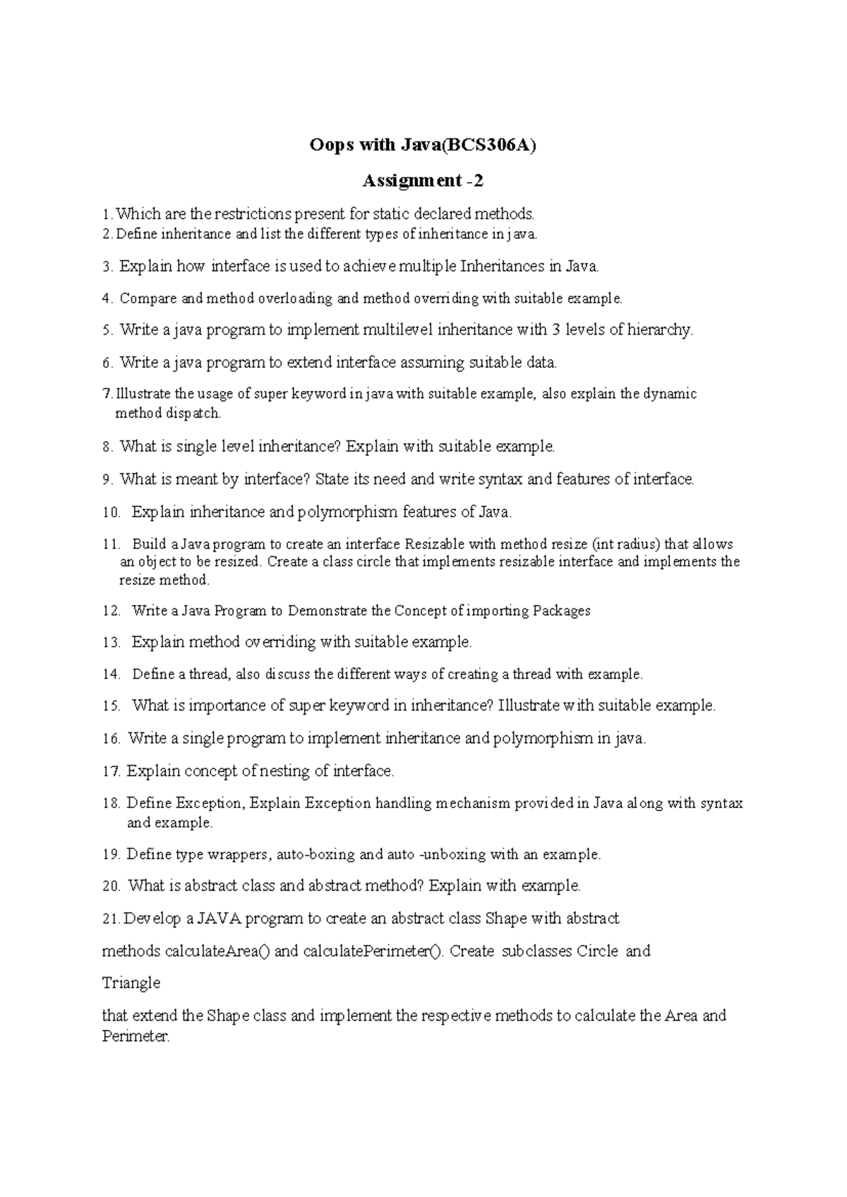 Java Concepts and Inheritance (BCS306A) - Assignment 2 Lecture Notes ...