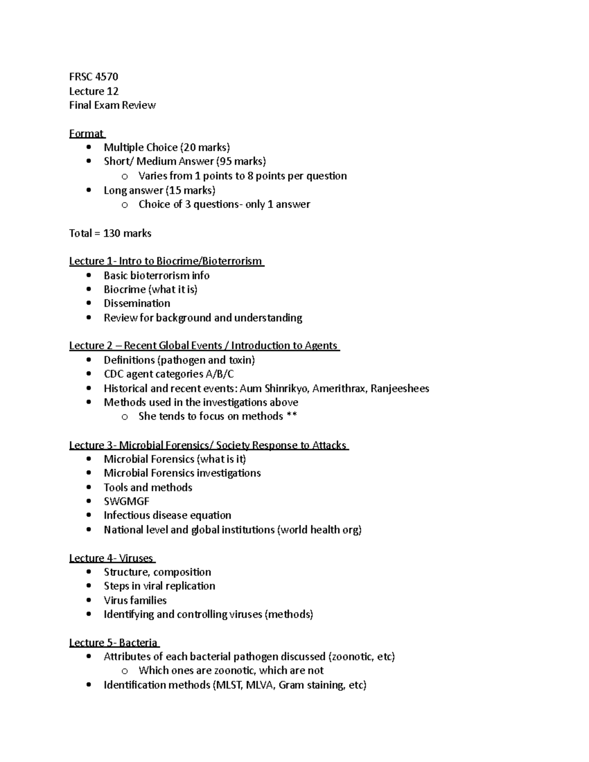 Lecture 12 - FRSC 4570 Lecture 12 Final Exam Review Format Multiple ...