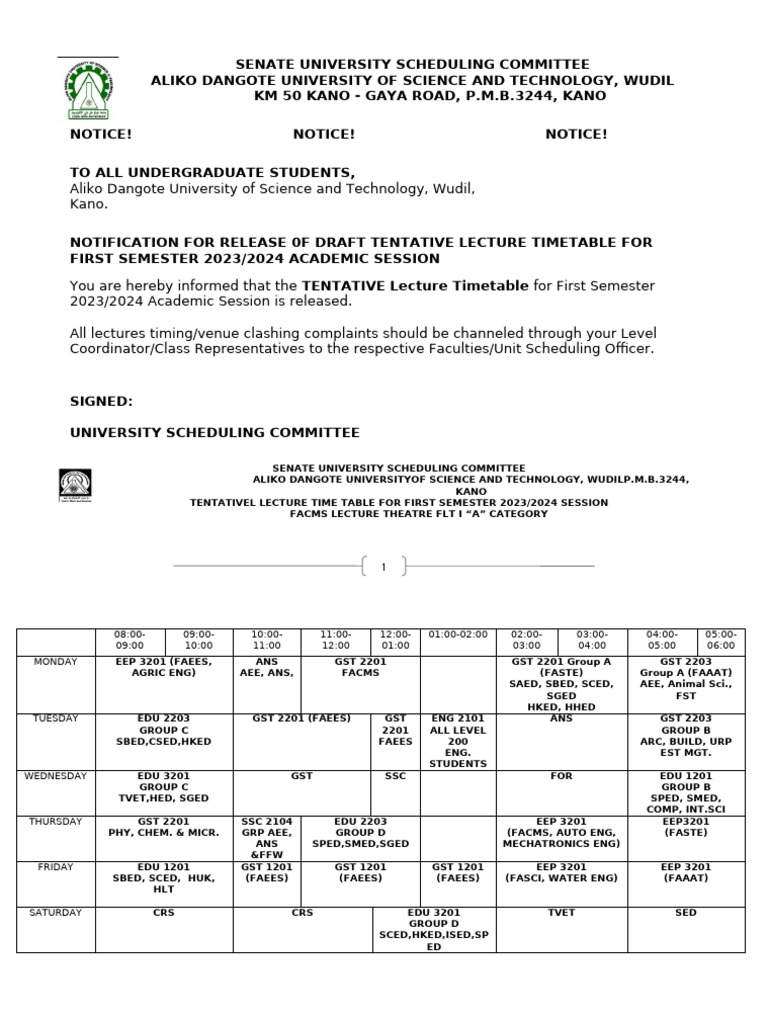 Draft Lecture Timetable Notice | PDF | Computer Engineering | Computing