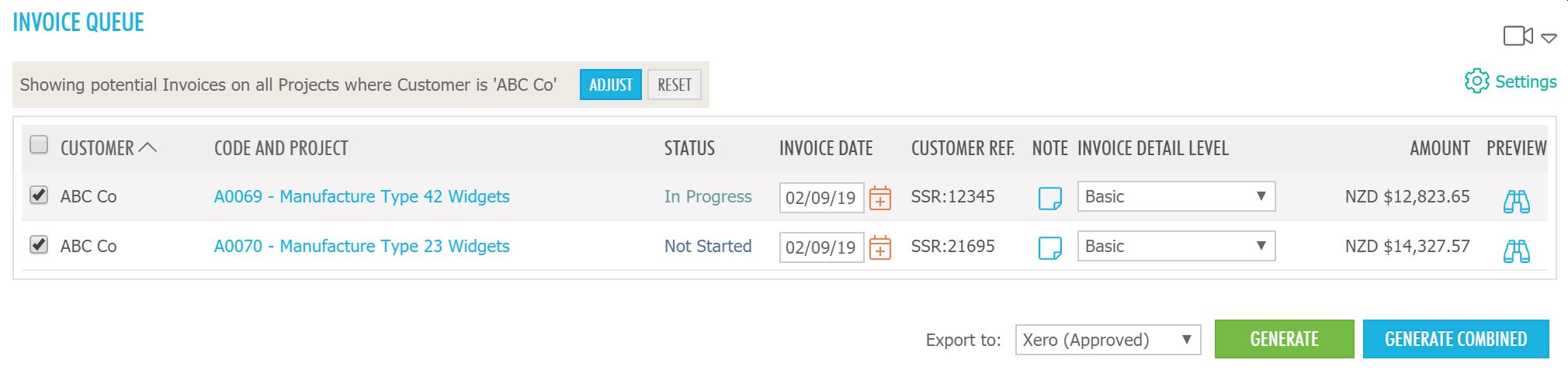 Combined project invoices