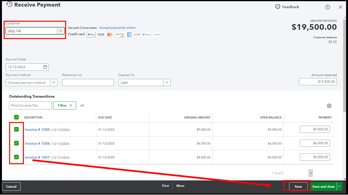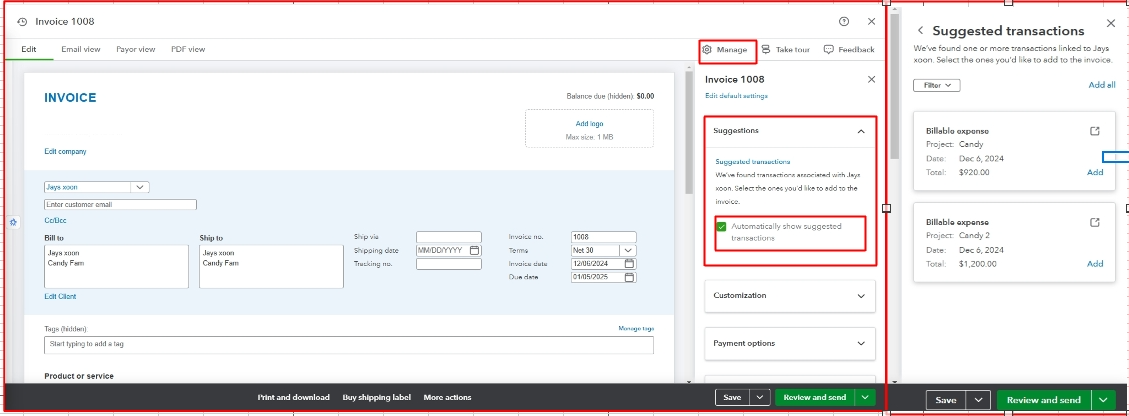 Send project invoices and collect invoice balance