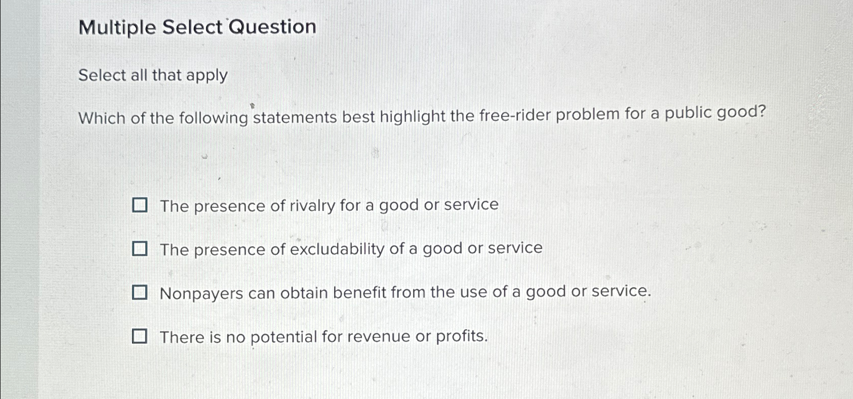 Solved: Multiple Select Question Select all that apply Choose the ...
