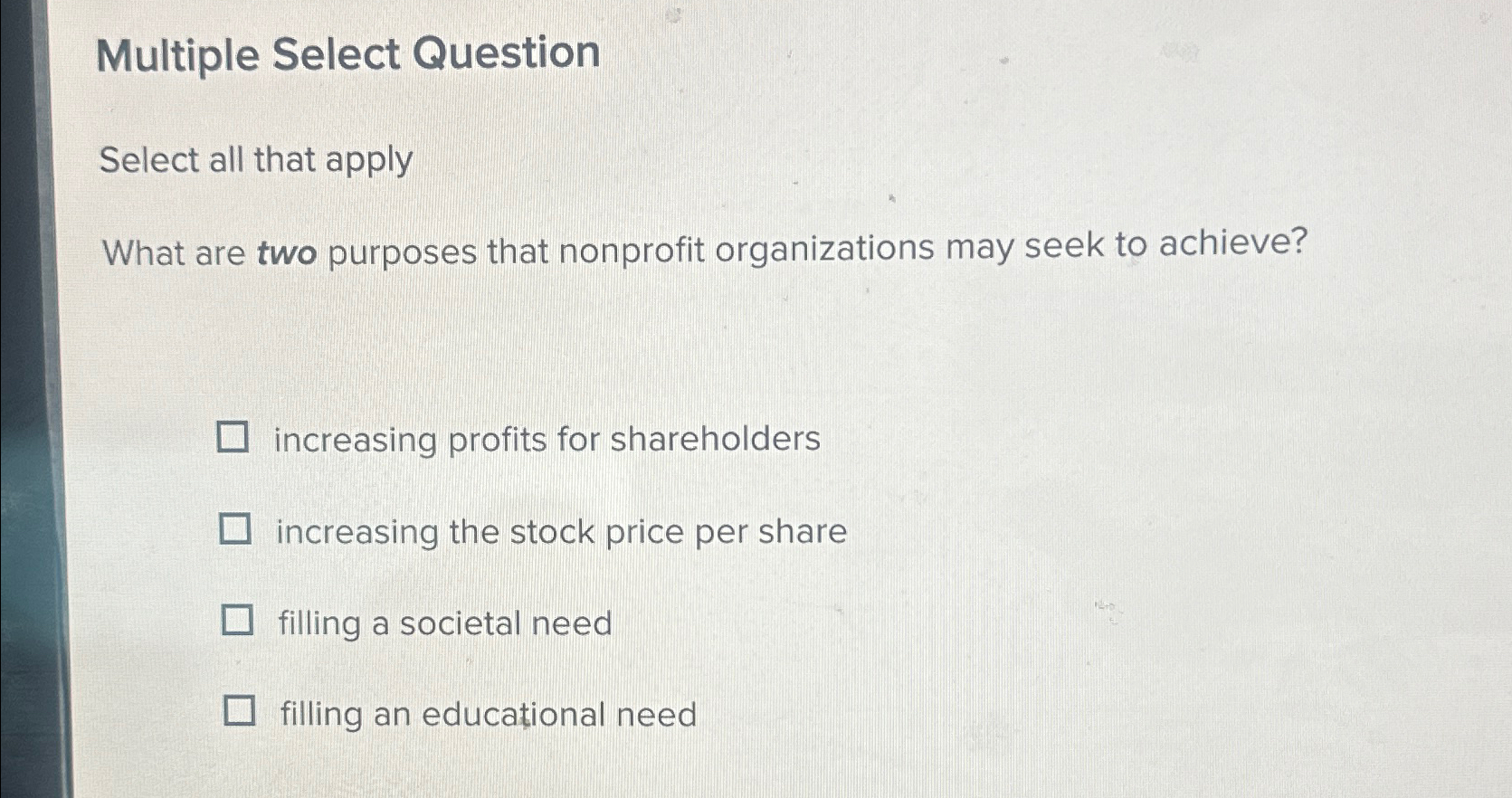 Multiple Select Question Select That Apply Diverse Organization Likely ...