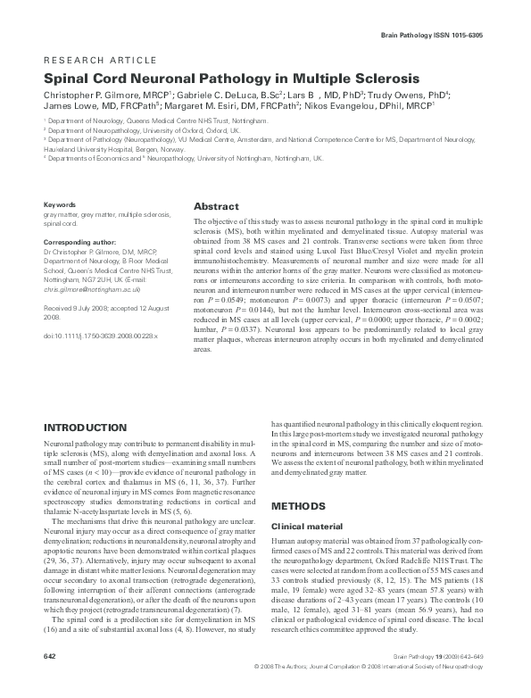 (PDF) Spinal Cord Neuronal Pathology in Multiple Sclerosis
