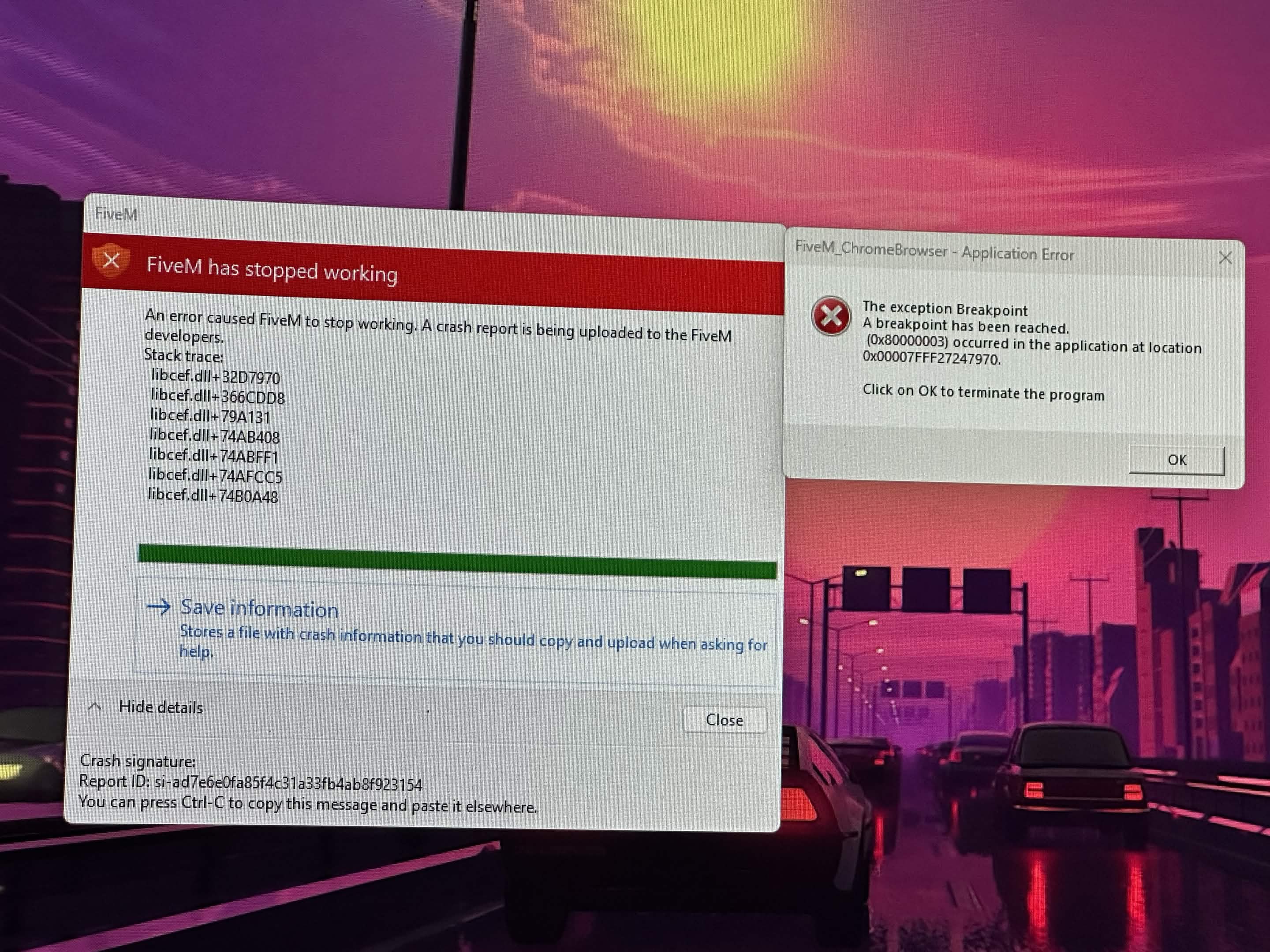 Multiple recurring crashes (std::bad_alloc, libcef.dll, and Streamer ...
