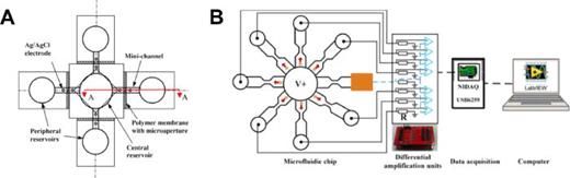 Multiplex lab-on-a-chip (LOC) for AMI screening. (A), A scanning ...