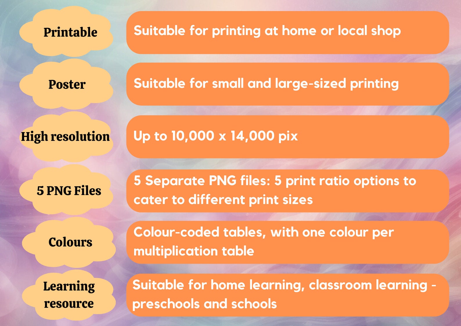 Multiplication Table Printable Times Table Poster for Homeschool ...