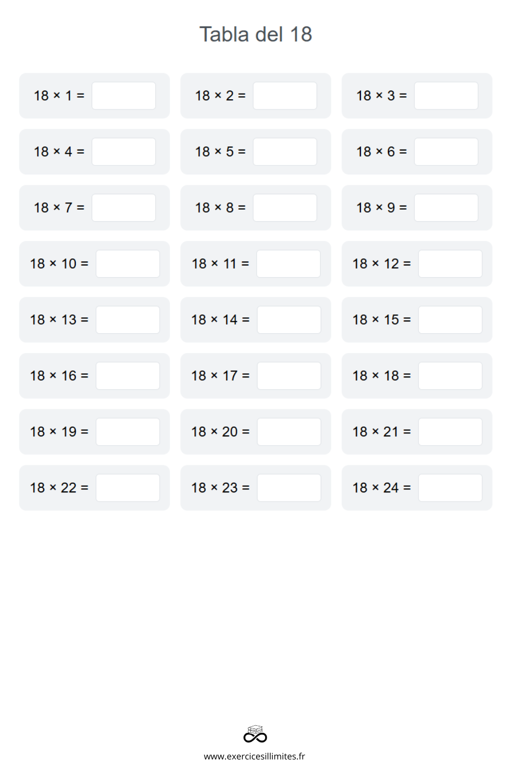18 Times Table Multiplication Chart | Exercise on 18 Times Table ...