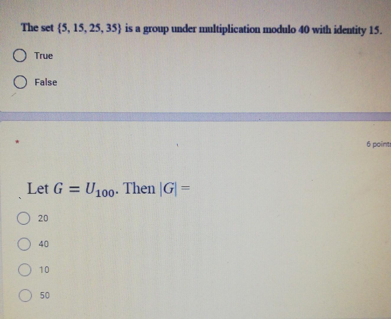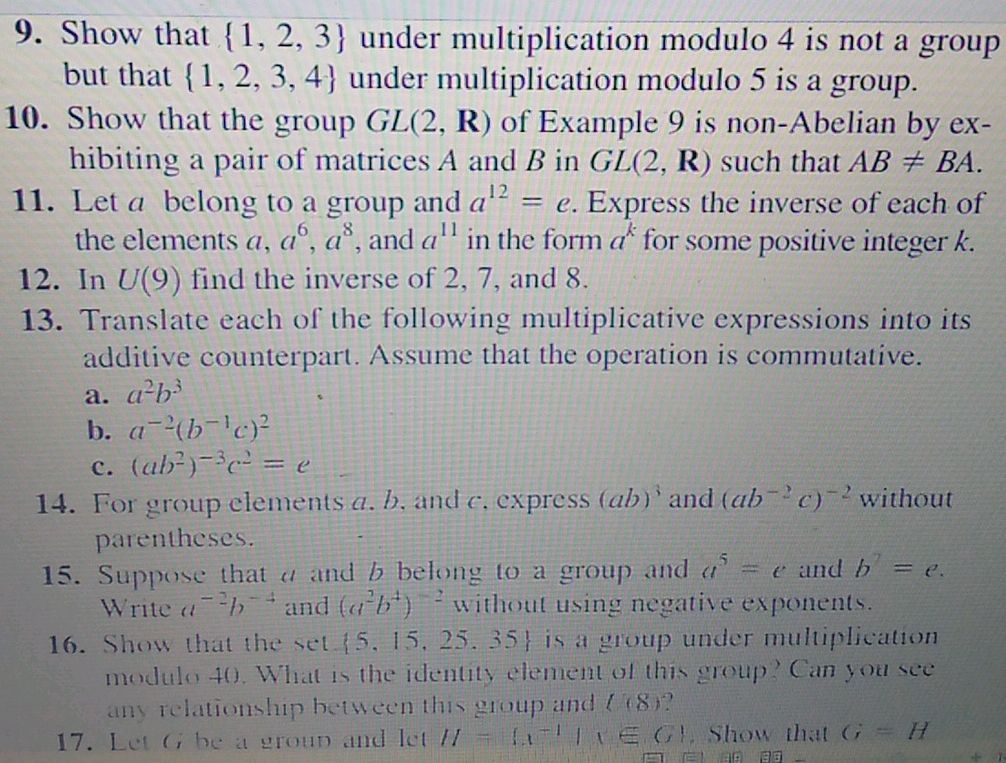 SOLVED: Show that the set {5,15,25,35} is a group under multiplication ...