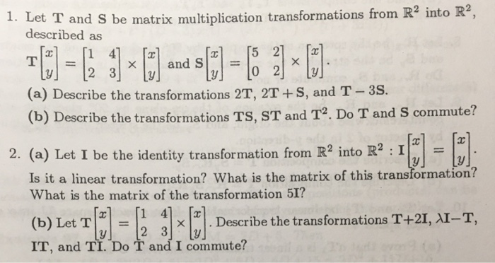 Solved Let T and S be matrix multiplication transformations | Chegg.com