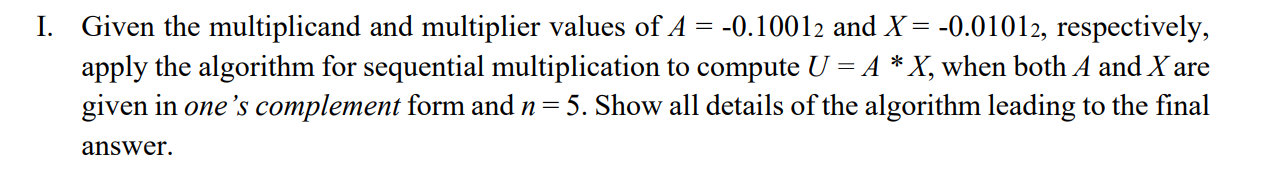Solved I. Given the multiplicand and multiplier values of | Chegg.com