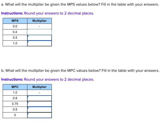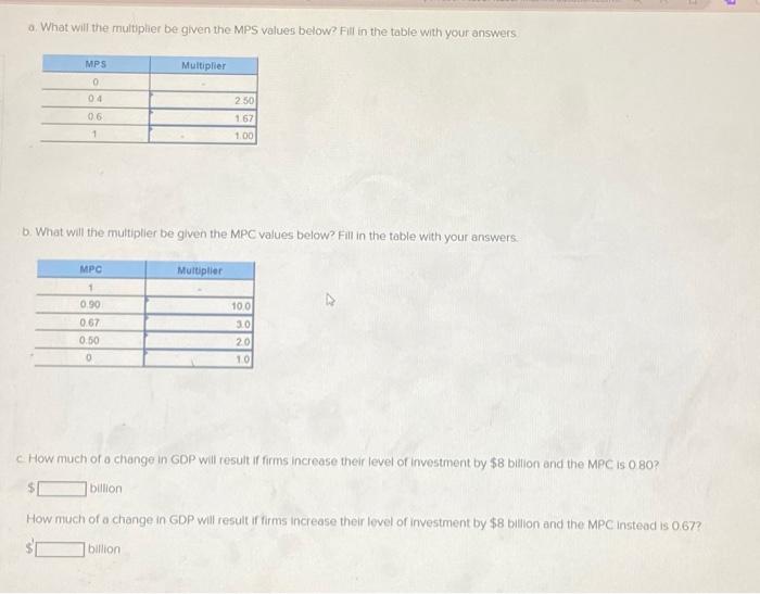 Solved a. What will the multiplier be given the MPS values | Chegg.com