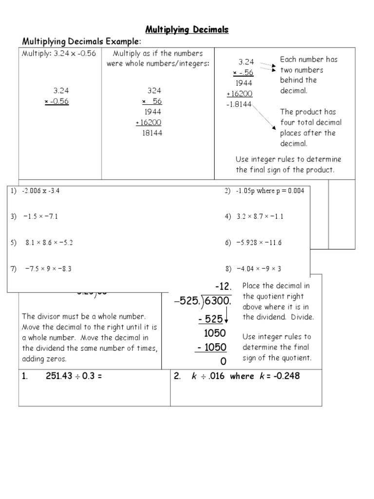 Multiplying And Dividing Decimals - Elementary Math Guide