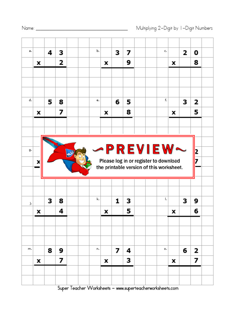 Double Digit and Triple Digit Multiplication Worksheets Graph Paper ...