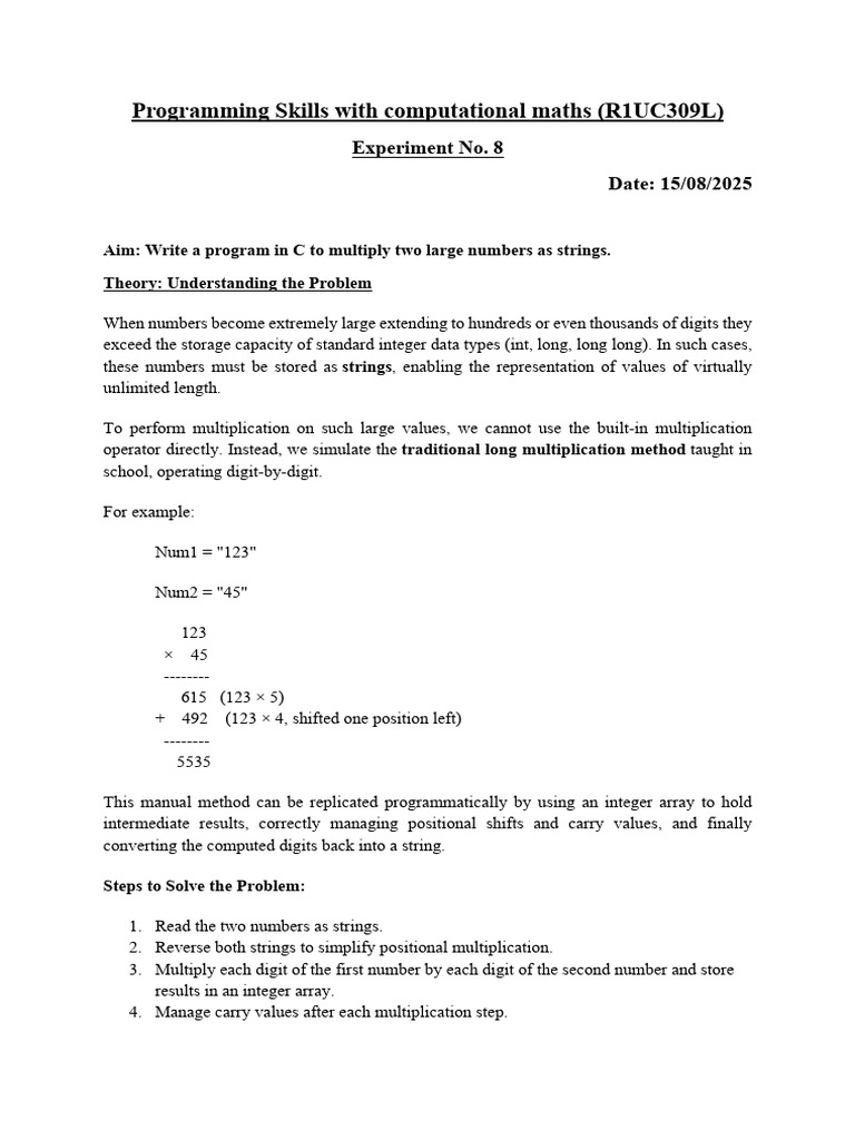 Experiment 8 Multiply Two Large Numbers As Strings | PDF | Integer ...