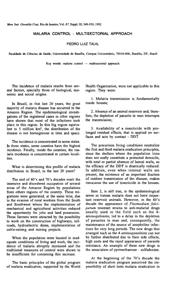 (PDF) Malaria Control - Multisectorial approach