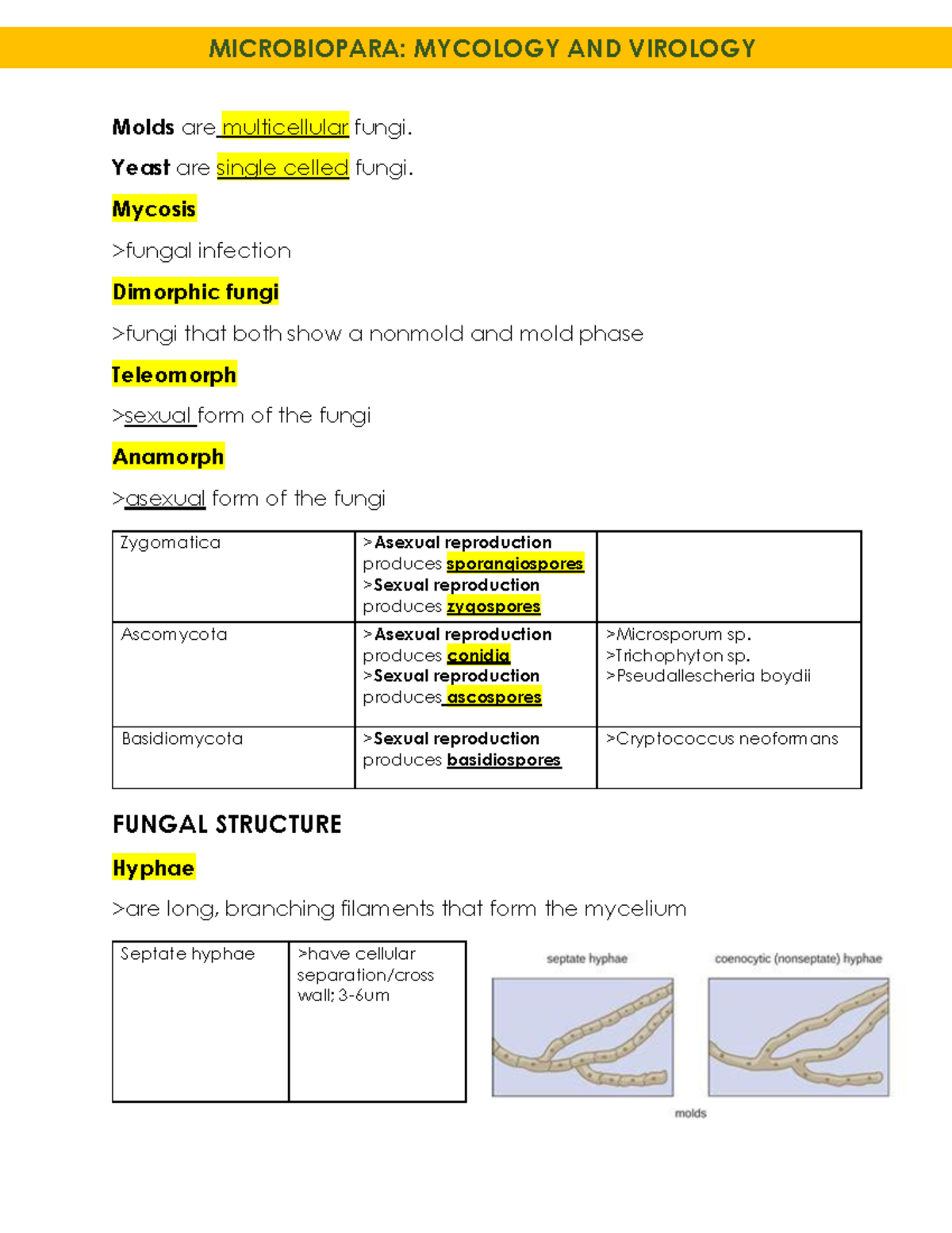 Mycology AND Virology - wsdd - Molds are multicellular fungi. Yeast are ...