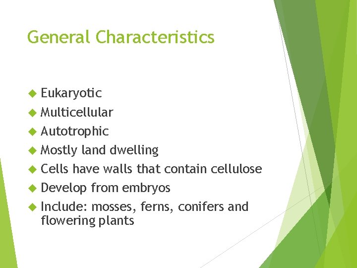 Plantae General Characteristics Eukaryotic Multicellular Autotrophic ...