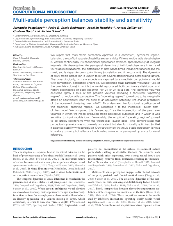 (PDF) Multi-stable perception balances stability and sensitivity