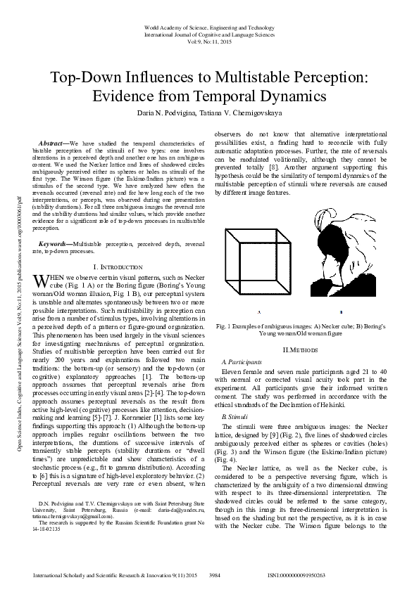 (PDF) Top-Down Influences To Multistable Perception: Evidence From ...