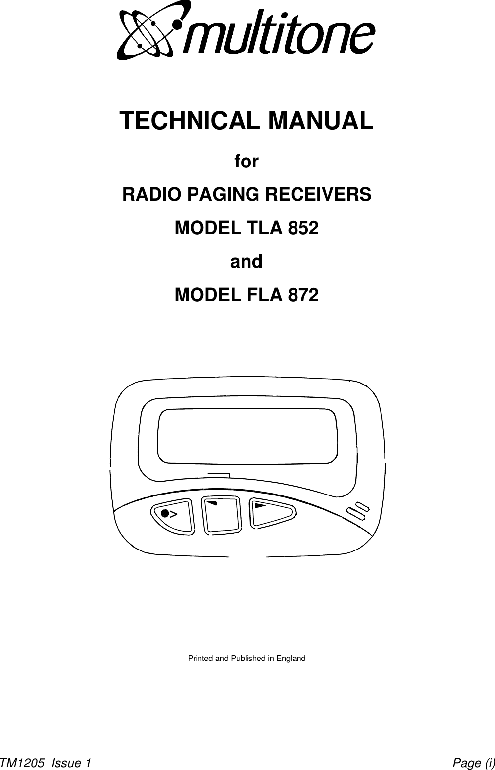 Multitone Electronics PLC TLA853 Pager receiver User Manual Pl0319