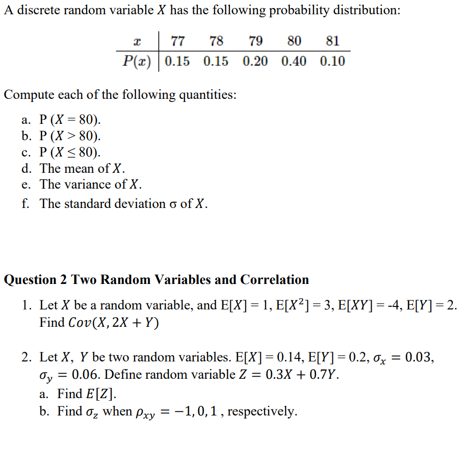 Solved Two discrete random variables X and Y have the | Chegg.com